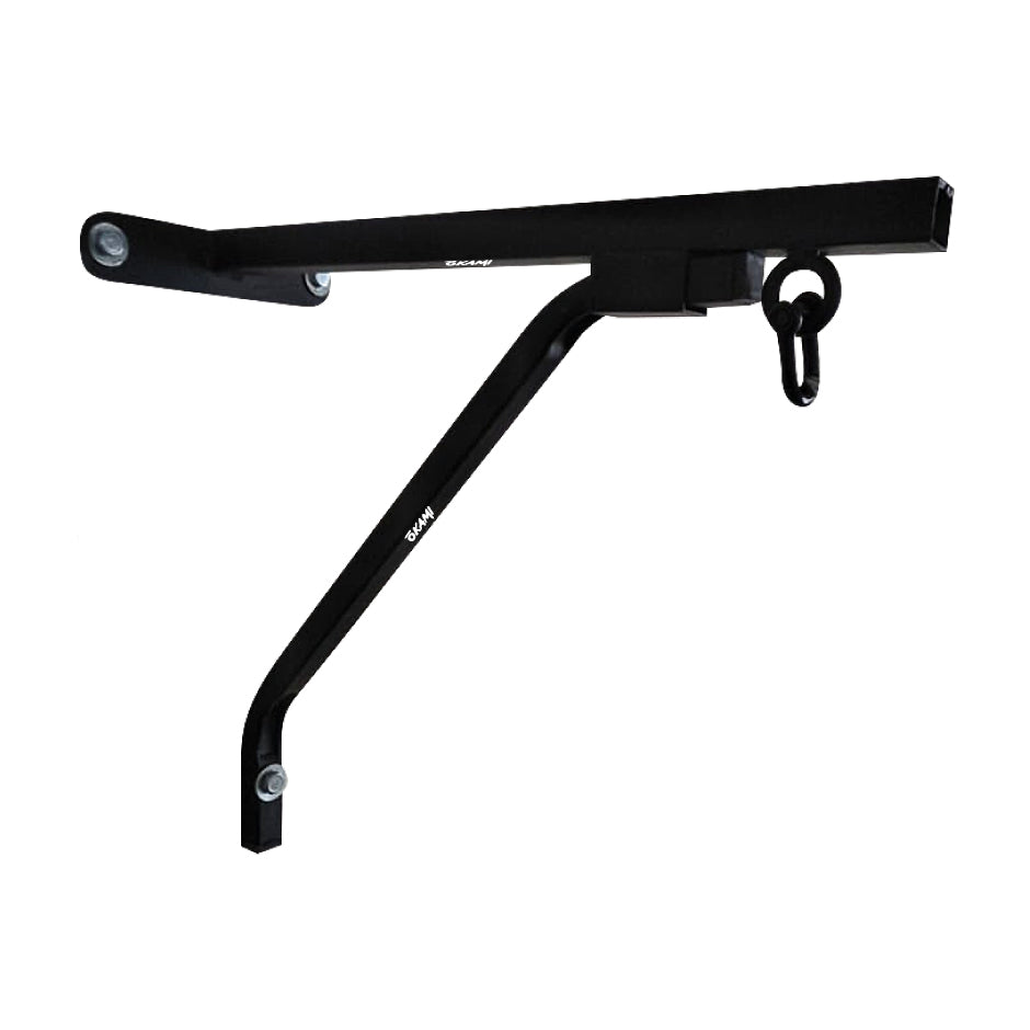 El nuevo Soporte para Saco OKAMI conjuga máxima firmeza, por ello esta fabricado 100% de hierro y soporta hasta 50kg de peso, con una mínima invasión en las superficies de sujeción. Pensado tanto para su uso doméstico como para gimnasio en donde la optimización de los espacios es un factor importante.